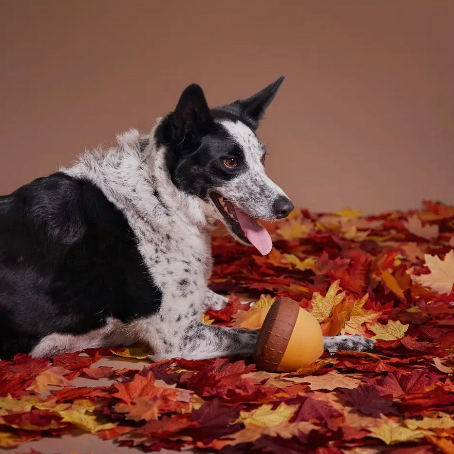 This acorn dog toy is perfect for pups who like to squirrel away their treat treasures. Acornucopia is made with peanut-scented natural rubber with a gnaw-friendly texture for satisfying chew sessions. You wanna get really nuts? Add some snacks to this wacky-wobble treat dispensing acorn, and watch your dog go nuts!